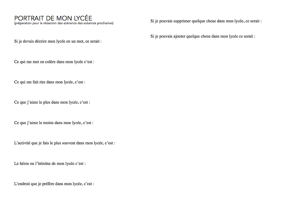 Aide support pour la promenade dans le lycée et le choix des images pour le rallye photo par les étudiants